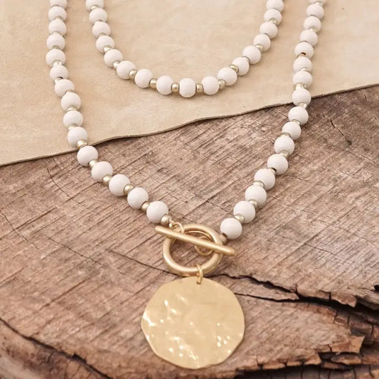 Wooden Beads Short Coin Toggle Necklace