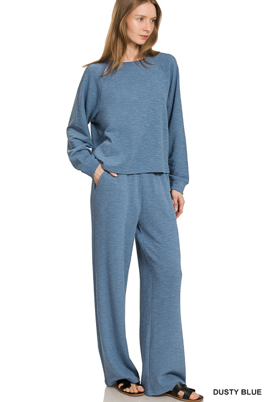 Slub long sleeve top & pants 2pcs set